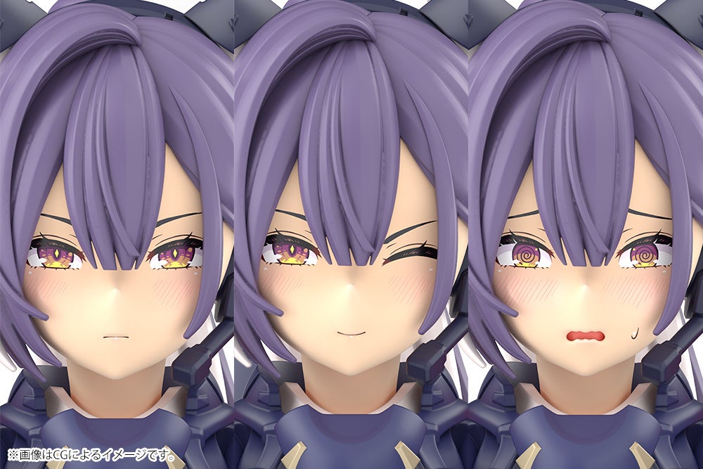 成型色は色分けされ、顔はタンポ印刷で塗装済み、組み立てただけでイメージに近い仕上がりになります。3mm径のジョイント穴の採用でシリーズ内でのパーツ互換性はもちろんのこと、すでに発売済みのコトブキヤプラモデルパーツの多くと組み合わせて遊ぶことができます。