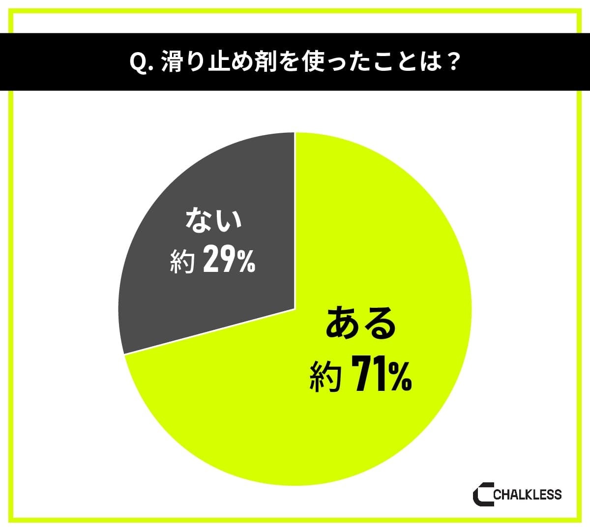 続いてパワーリフティングをしているときに、ロジンや粉末系(チョーク)、液体系などの滑り止め剤を使用したことがあるかを質問しました。