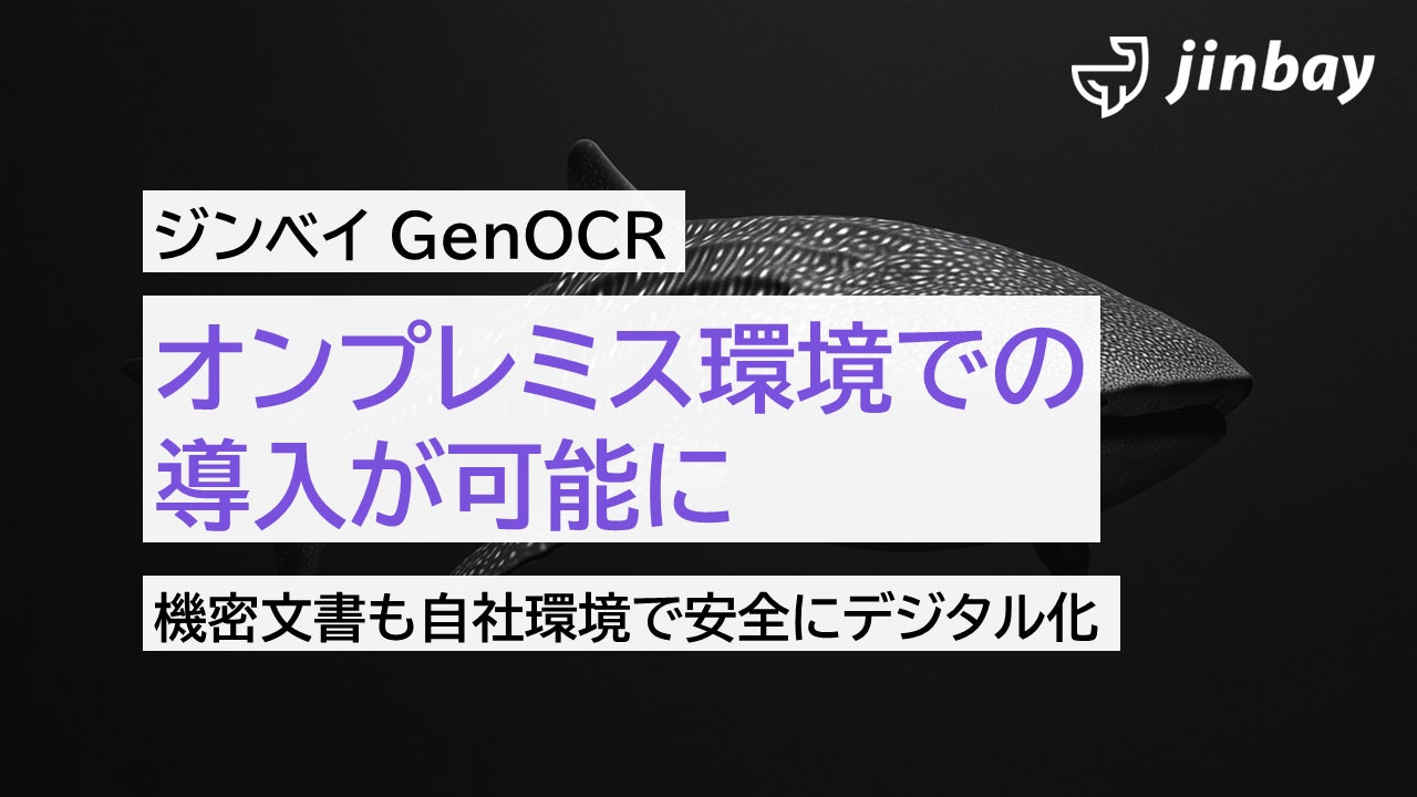 ジンベイ株式会社(本社:神奈川県横浜市、代表取締役:上田英介)は、AIによる高精度な文書読み取りソリューション「ジンベイ GenOCR」を、従来のクラウド環境に加え、オンプレミス環境でも提供開始いたしました。