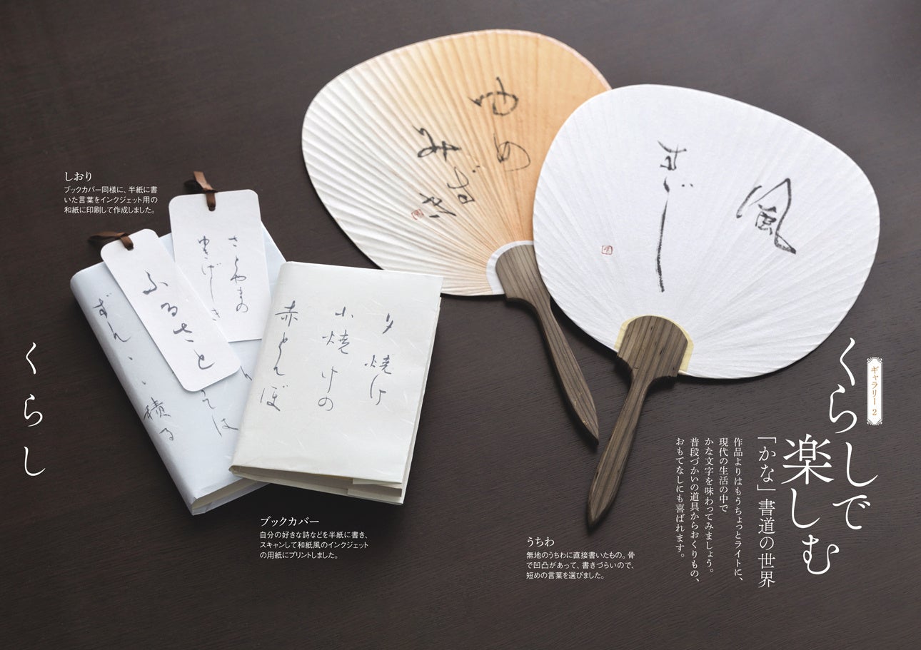 祝儀袋などの表書き、食事のメニューや扇子の文字といった日常的な場面でのかな書道の活用も提案しています。普段の生活の中で、気軽にかな書道を取り入れることができます。
