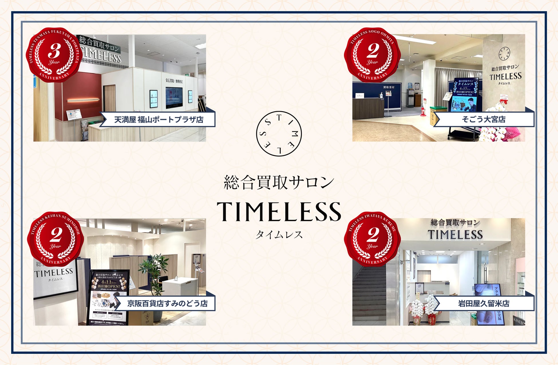 【周年店舗】リユース業界の株式会社タイムレス「総合買取サロン タイムレス」2026年4月度周年店舗を紹介!店舗限定周年キャンペーンを実施中
