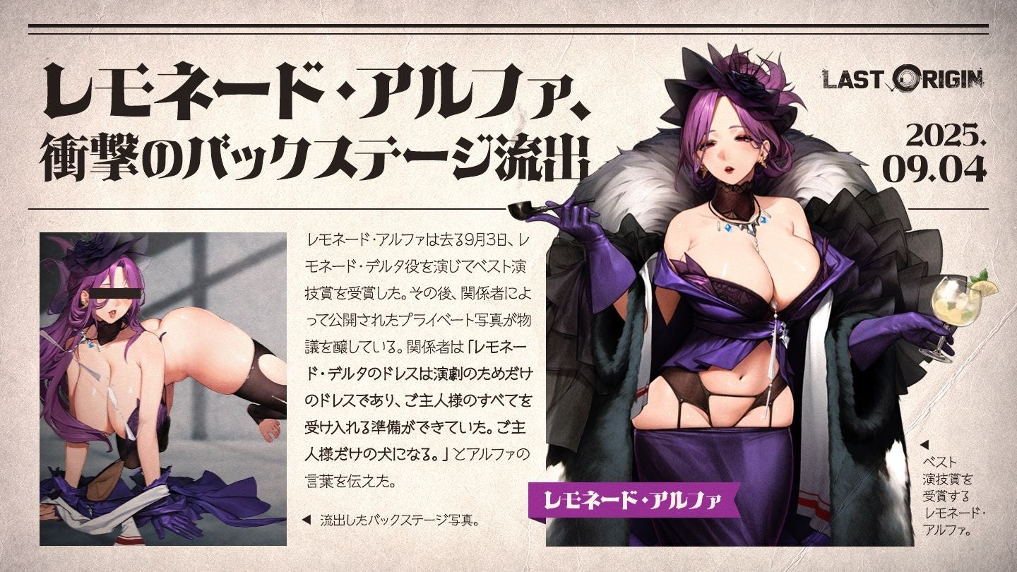 株式会社G・O・P[本社:東京都新宿区、代表取締役社長:申 載明(シン・ジェミョン)](以下、G・O・P)は、スマートフォン向け次世代美少女×戦略RPG『ラストオリジン』(略称:ラスオリ)において、2025年9月4日(木)より、新規スキン3種の追加販売や既存スキン4種の割引セールを開始したことをお知らせいたします。