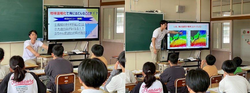 子どもたちは「漁具が海の生き物に絡まっていてショックだった」「浜でごみを拾うようにしたい」「これまでは南にいるお魚がたくさん移動してきているのがびっくりした」「電気をこまめに消したり、節水したりするようにしたい」という意見や感想が出されていました。