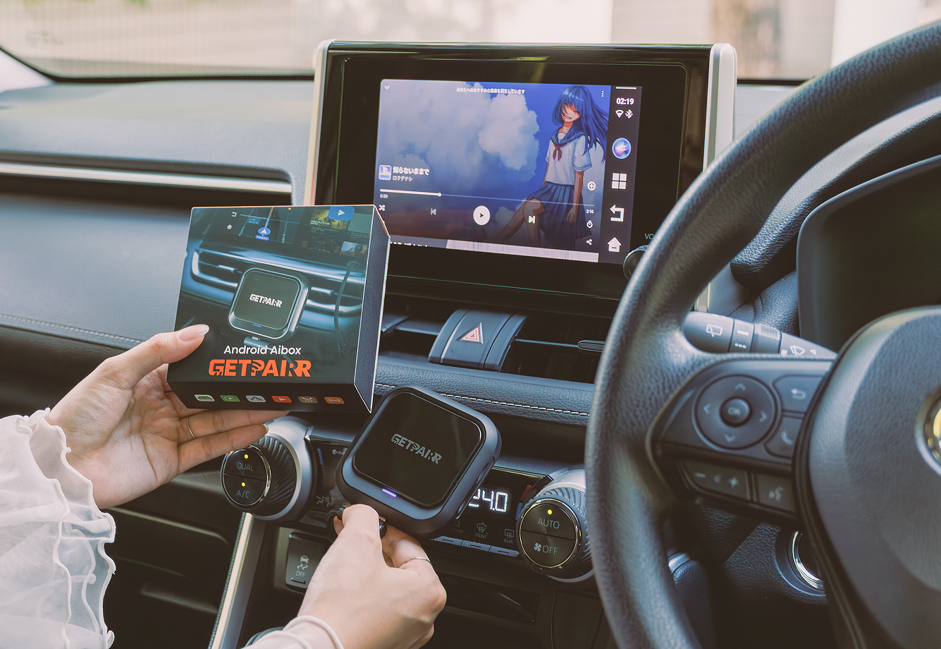 GetPairr Box(PCS55)は、有線CarPlay対応車に挿すだけで、車内をAndroid化できるAI BOXです。