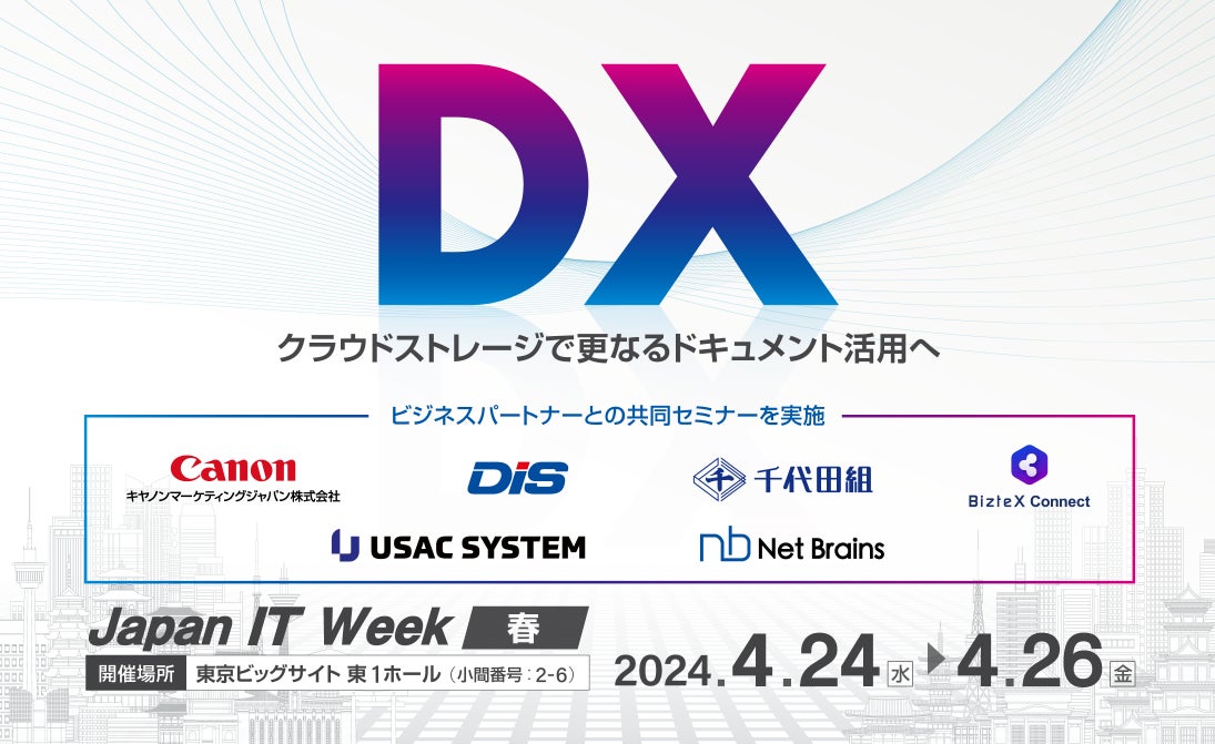 クラウドストレージで更なるドキュメント活用を推進する株式会社ダイレクトクラウド(本社:東京都港区、代表取締役:安 貞善、以下ダイレクトクラウド)は、2024年4月24日(水)~ 4月26日(金)に東京ビッグサイトで開催される、「第33回Japan IT Week【春】」(主催:RX Japan株式会社)に法人向けクラウドストレージ「DirectCloud」のブースを出展いたします。