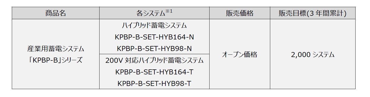 産業向け蓄電システム「KPBP-B」システムを2022年6月中旬にリリースします。