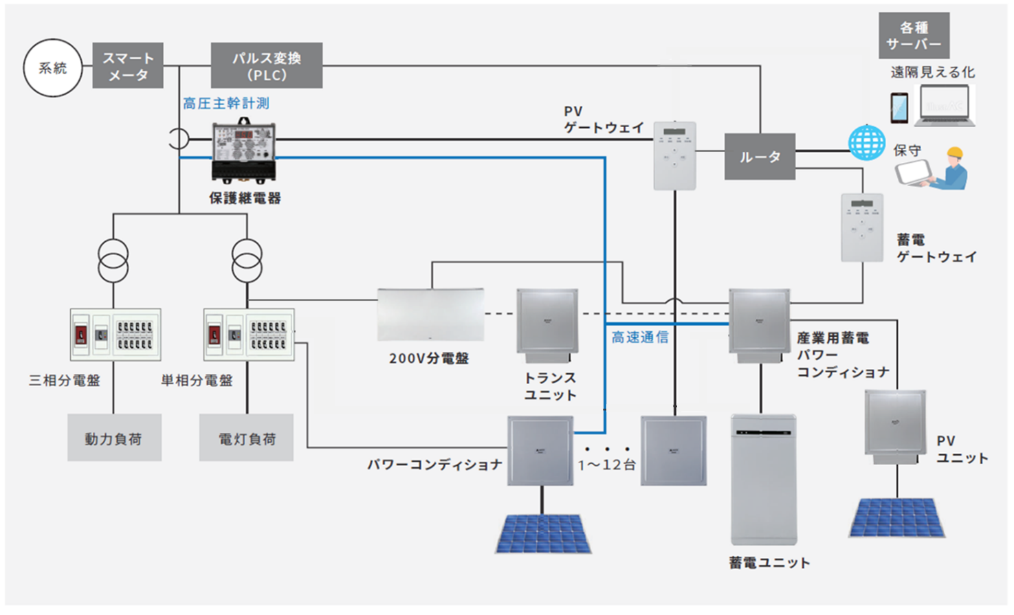 太陽光発電用パワーコンディショナや保護継電器等の高圧受電設備との接続が可能