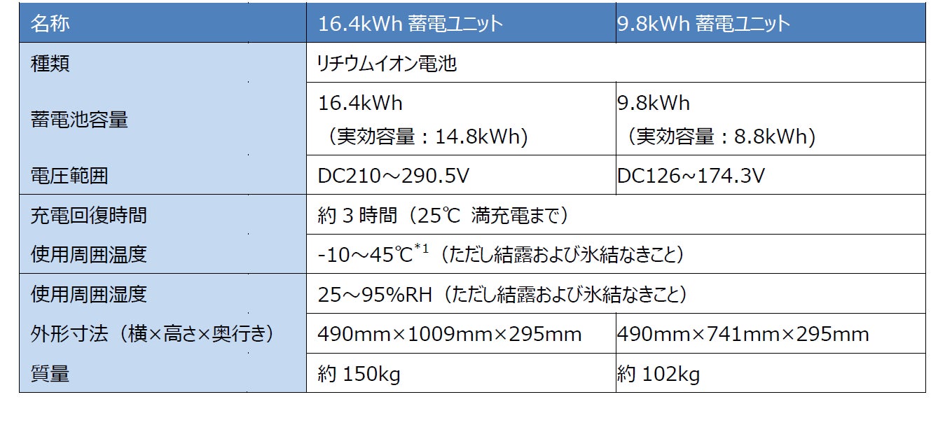 蓄電ユニットの容量は9.8kWh・16.4kWhの2ラインナップ。