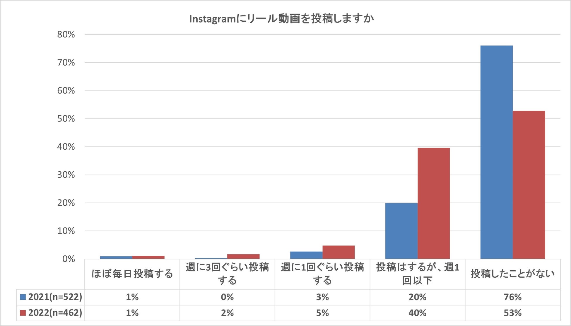 ・リール投稿、未経験者は53%まで減少。週1回以下の投稿は40%