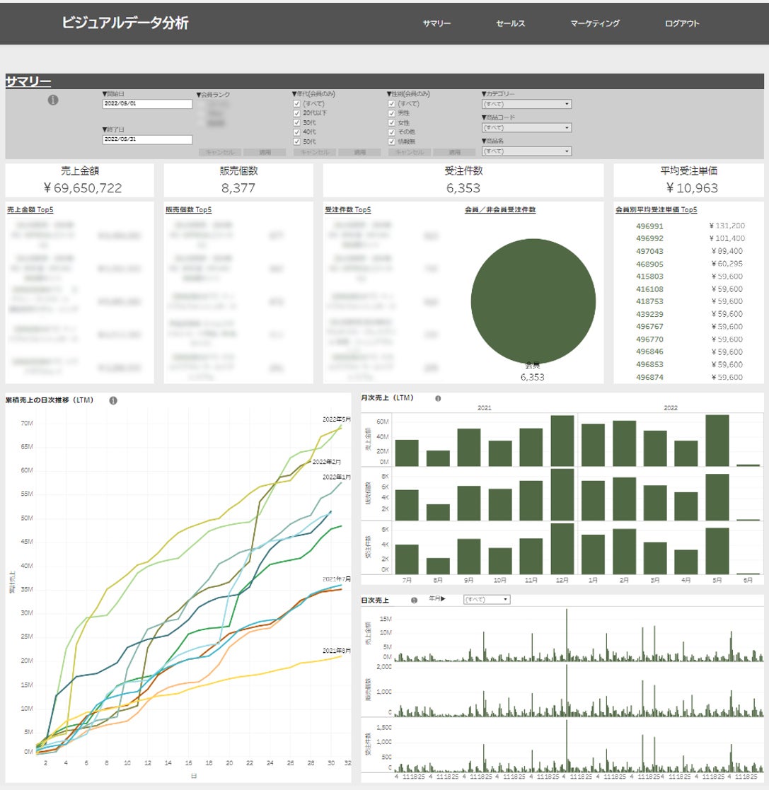 販売・会員・アクセスなどの実績データを視覚化し、多角的な分析を可能に
