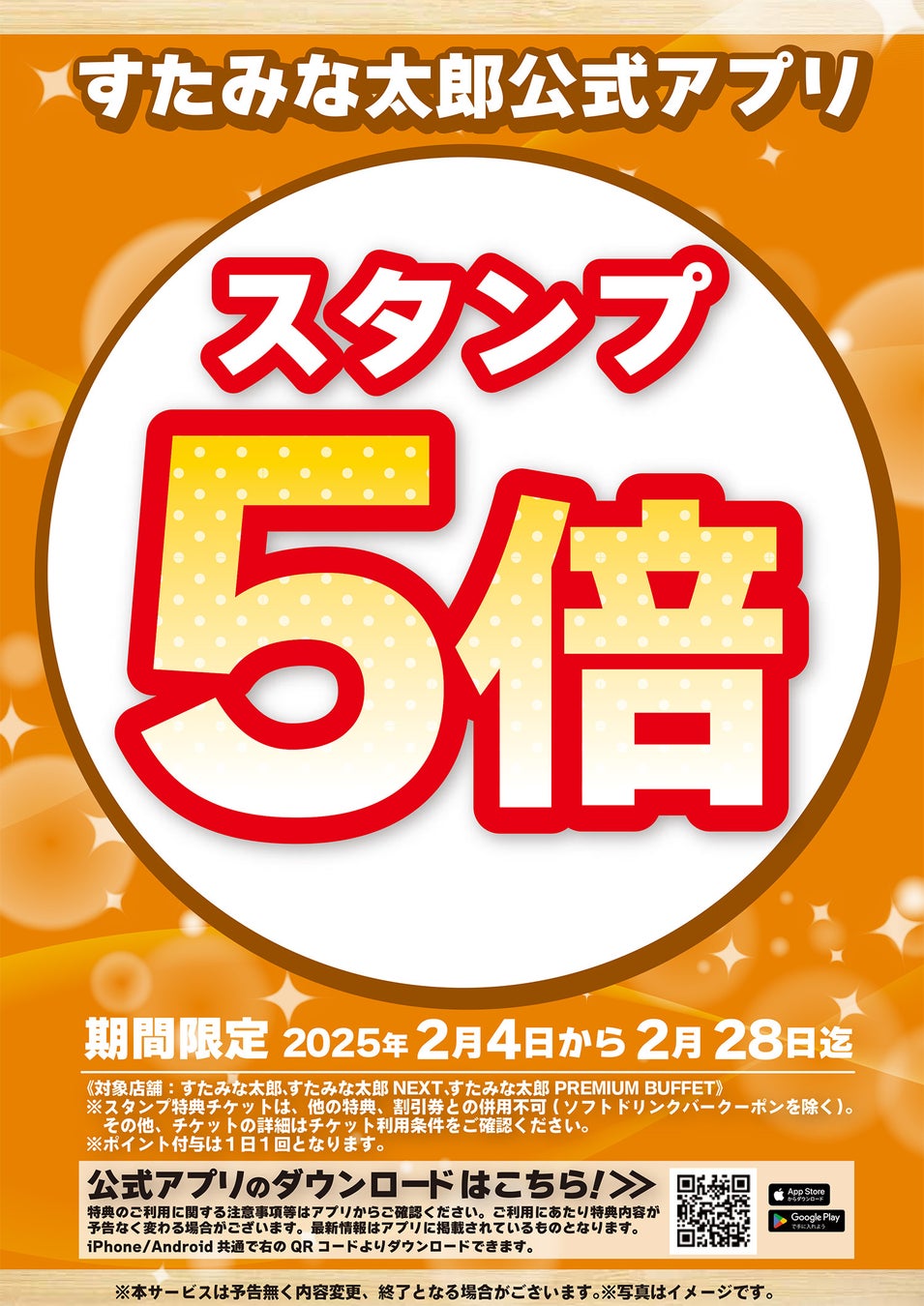 2025年2月4日(火)~2025年2月28日(金)までの期間、当店のアプリスタンプを5倍取得いただけるキャンぺーンを同時に実施いたします。