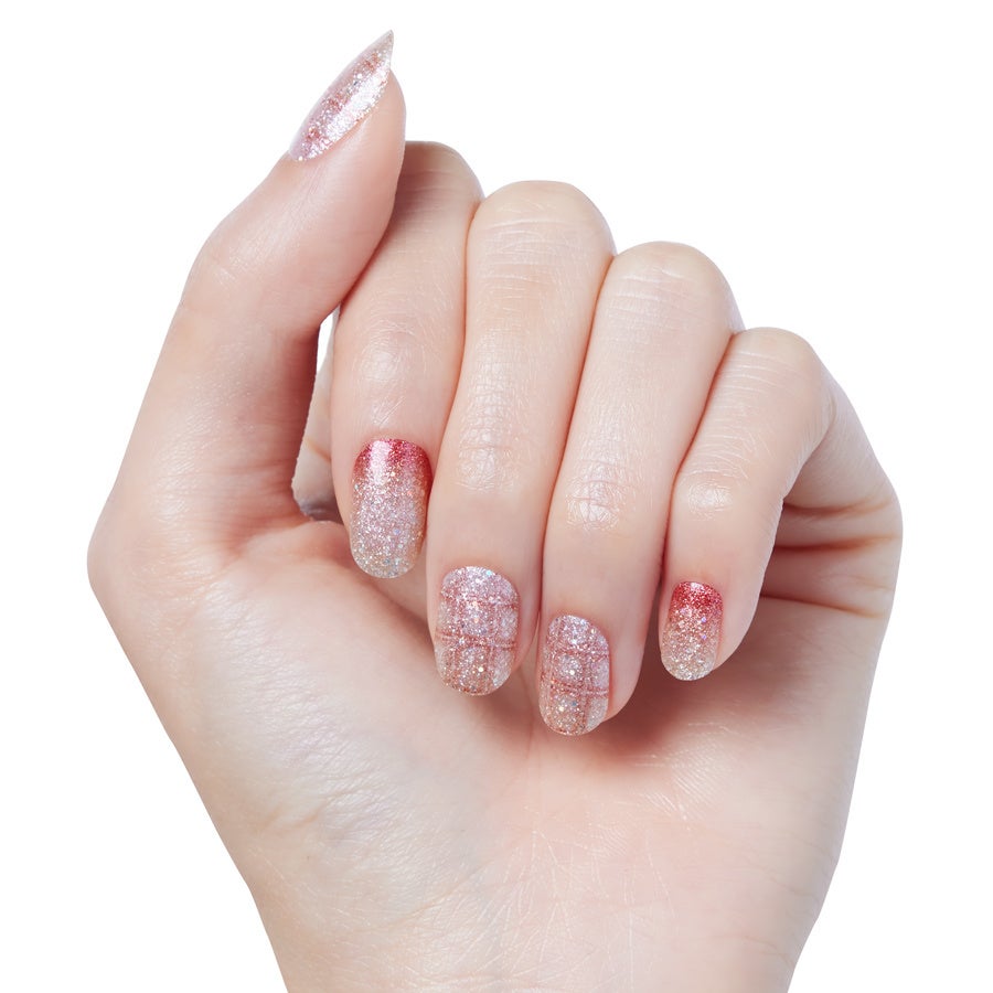 液体マニキュア成分を特殊技術でソフトシート化。薄く柔らかい1枚のシートは3層構造で、シートの上からトップコートを塗る必要はありません。とても薄いのに伸張性にすぐれ、爪へのフィット感も抜群です。しかも、爪を保護しながら健やかに保つ「化粧品*」だから、貼っているあいだも爪のしなやかさやうるおいを守ります。