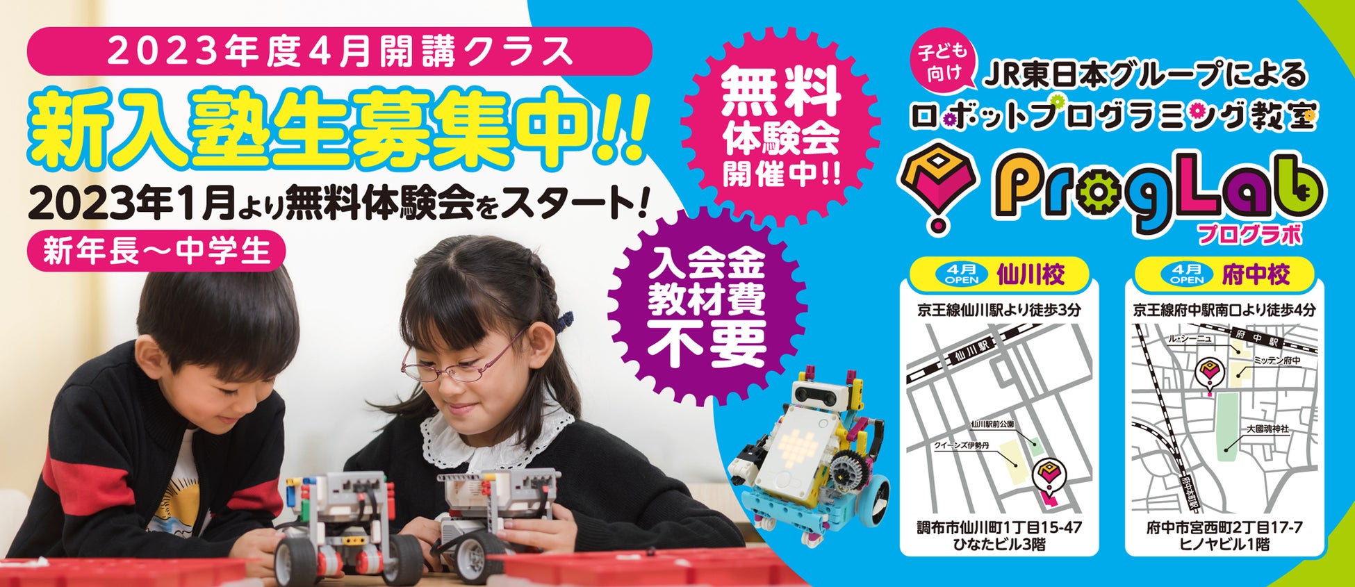 子ども向けロボットプログラミング教室「プログラボ」 2023年4月 京王線エリアに新たに仙川校・府中校の2校を開校!