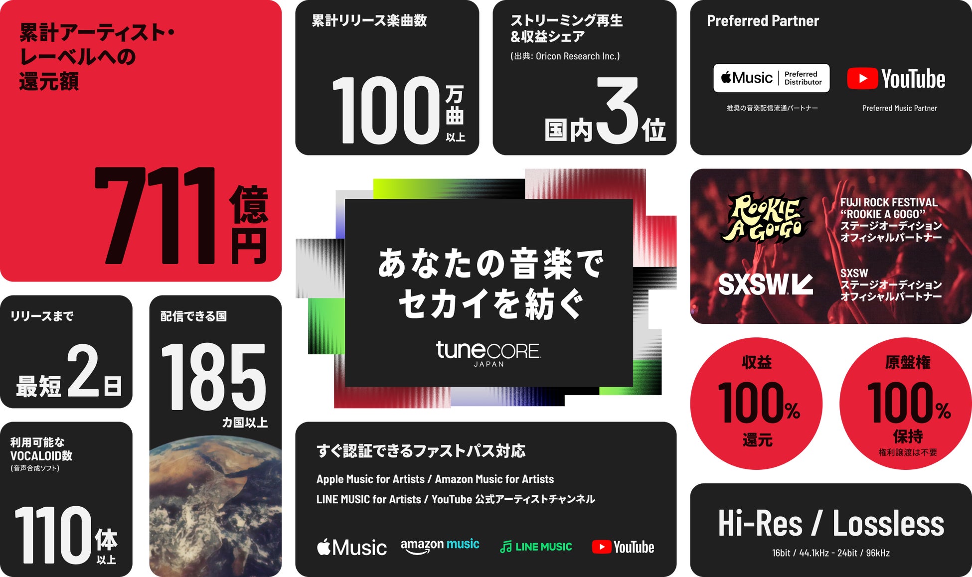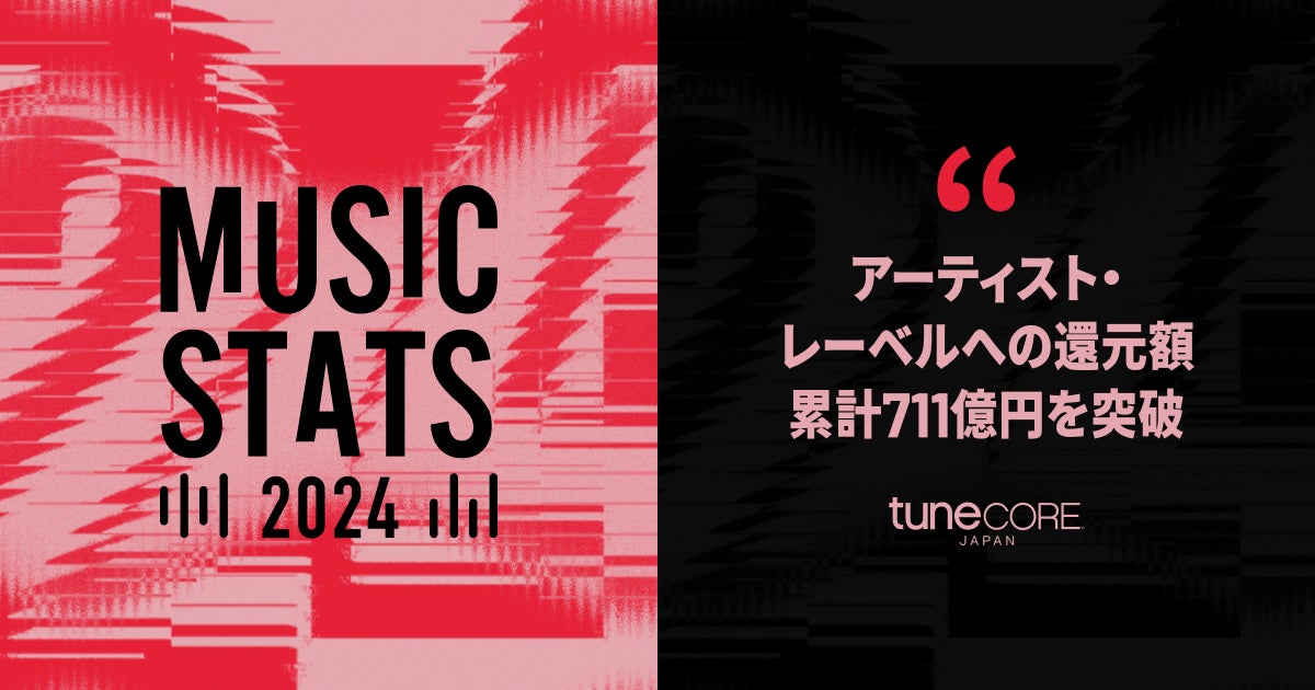 TuneCore Japanが例年この時期に発表しているMUSIC STATS。2024年のデータをまとめた今回のMUSIC STATS 2024では、利用アーティスト/レーベルへの還元額や、TuneCore Japanが保有する様々な音楽流通データを公開しました。