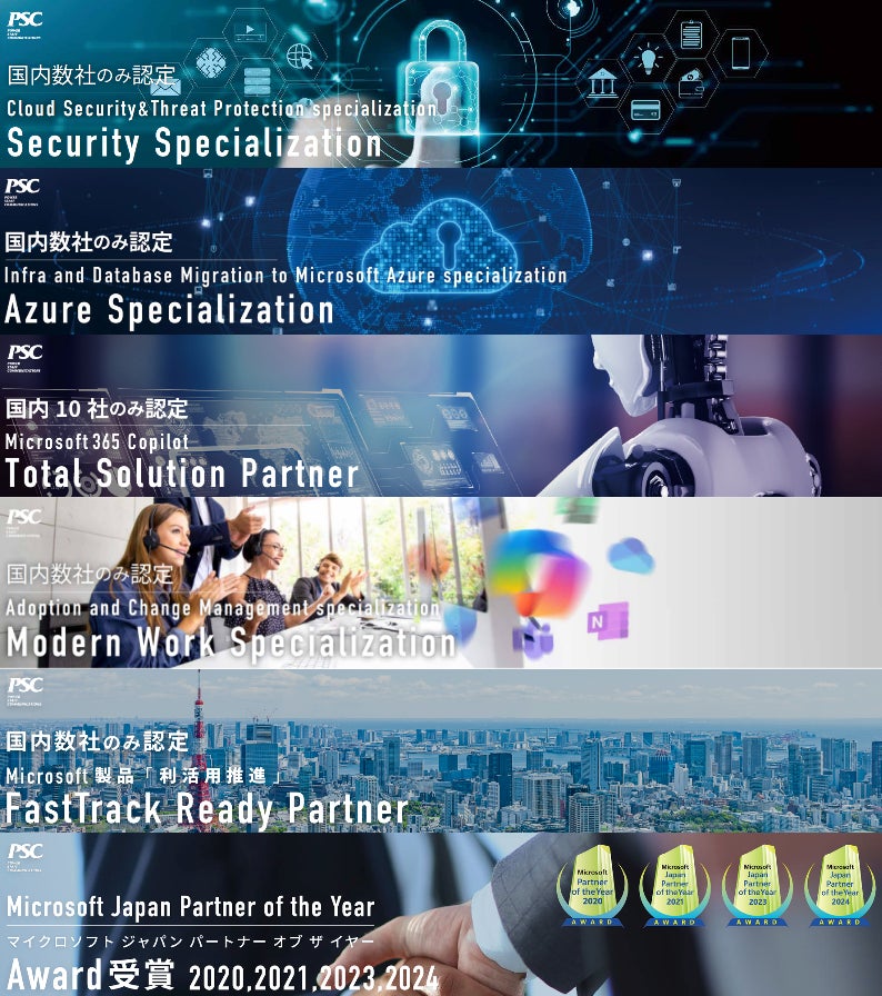 株式会社ピーエスシー様は、長年に亘ってMicrosoft 365を中心に「深い専門性」と「高い技術力」により幅広い分野でご活躍いただいてきました。中でも近時はAI領域であるMicrosoft 365 Copilotに関する取組みは顕著であり、お客様のModern Work環境の構築とその実績に、大変心強く感じております。