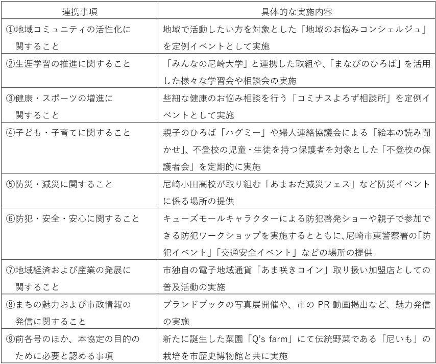 1.協定の名称 尼崎市とあまがさきキューズモール(東急不動産株式会社)との包括連携協定