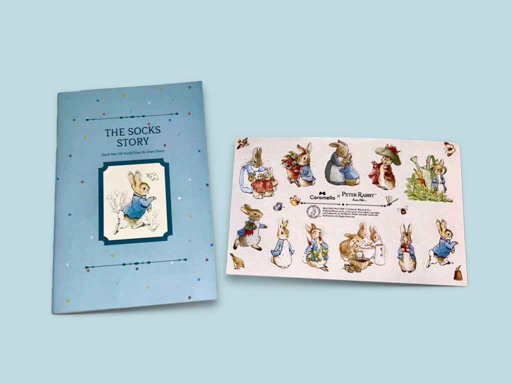CARAMELLA×ピーターラビット™ 人気キャンペーン拡大中!楽天でピーターラビットのくつ下購入でノート&ステッカー付グッズがもらえる特典が延長!AmazonやYahooショッピングでも順次発売開始