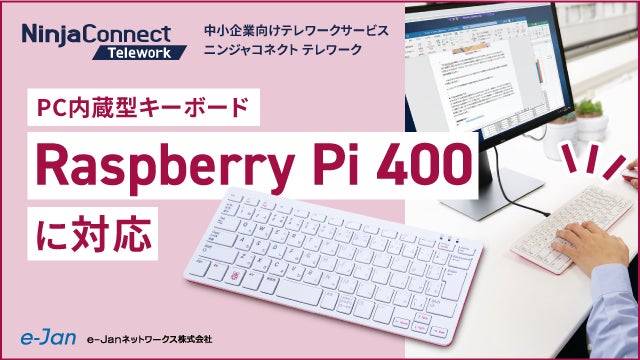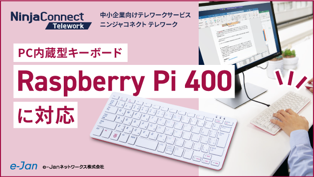 e-Janネットワークス株式会社(本社:東京都千代田区、代表取締役:坂本史郎 / 以下、e-Janネットワークス)は、中小企業向けに展開するテレワークサービス「NinjaConnect Telework(ニンジャコネクト テレワーク)」において、PC内蔵型キーボード「Raspberry Pi 400 日本語版」(以下、Raspberry Pi 400)に対応し、1月25日より「NinjaConnect Telework」専用ブラウザが搭載された本製品の販売を開始いたします。低コストで安全なテレワークを手軽に実施できる本製品により、PC配備等の ITインフラ整備コストが課題となってテレワークが進まない中小企業のテレワーク導入を後押ししてまいります。