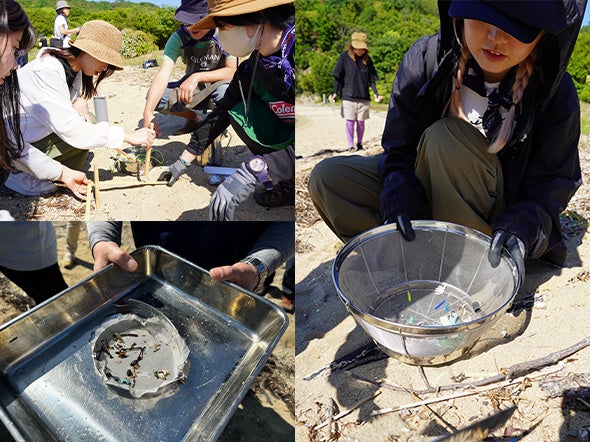 海洋ごみ拾いの後は、タラ オセアン ジャパンによる、マイクロプラスチック採取体験。