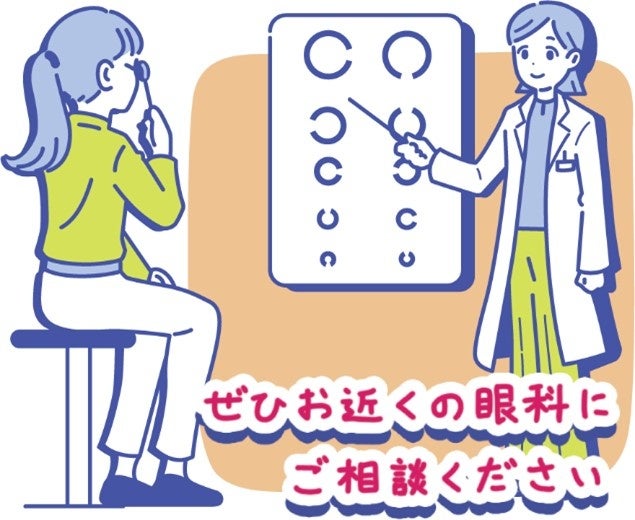 ④ 「デジタル眼精疲労」を感じたり、「自分は、乱視かも?」と思ったら、お近くの眼科に相談ください。