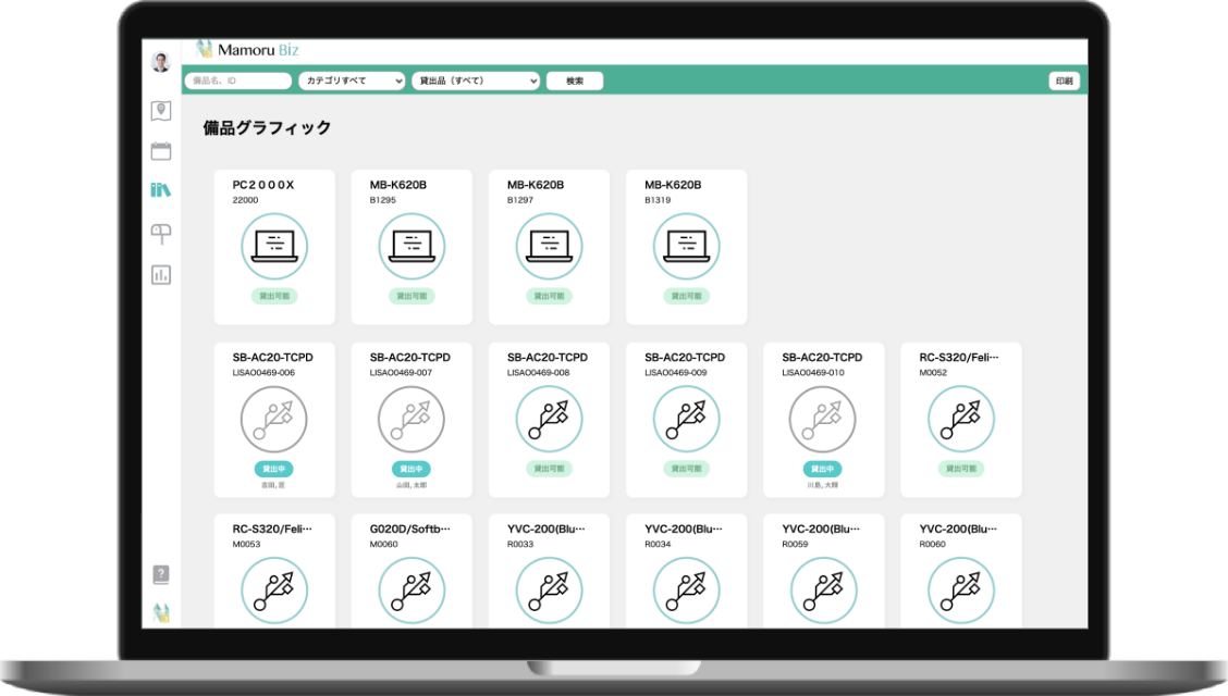 資産品、貸出品のQRコードを読み取るだけでモノの管理をスマートにします。 もう資産の棚卸し、貸出品の管理のために紙に手書きしたり、モノを探すような名もなき仕事をする必要はありません。 棚卸しに特化した機能も付いてます。