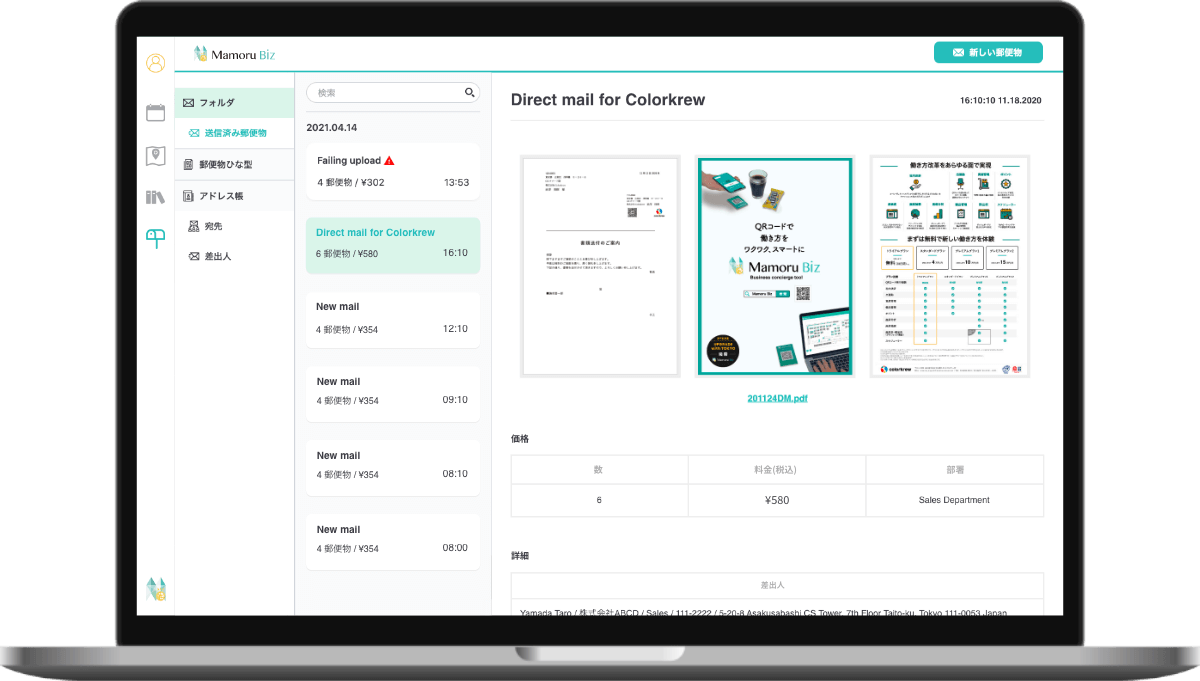 データと宛先を指定するだけでリアルな郵便物を送付することができます。もう郵便物を送るためにしていた印刷、切手の準備、封筒への封入、ポストへの投函といった名もなき仕事をする必要はありません。