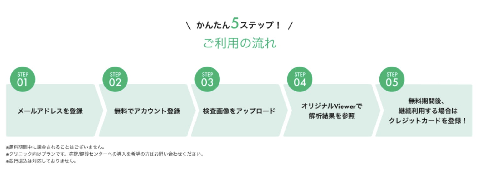 最初の14日間は無料でご利用いただけますので、ご興味をお持ちの医療施設様はお気軽に下記よりお申し込みください。