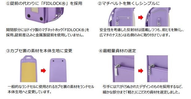 ※2003年に開発した樹脂パーツ「天使のはね」をはじめとした重量軽減機能を搭載したセイバンのランドセル