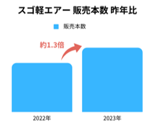 2022年と2023年の「スゴ軽 エアー」の累計販売本数を同条件で比較※したところ、その販売本数は約1.3倍になっており、軽量モデルへのニーズが高まっていることがわかります。