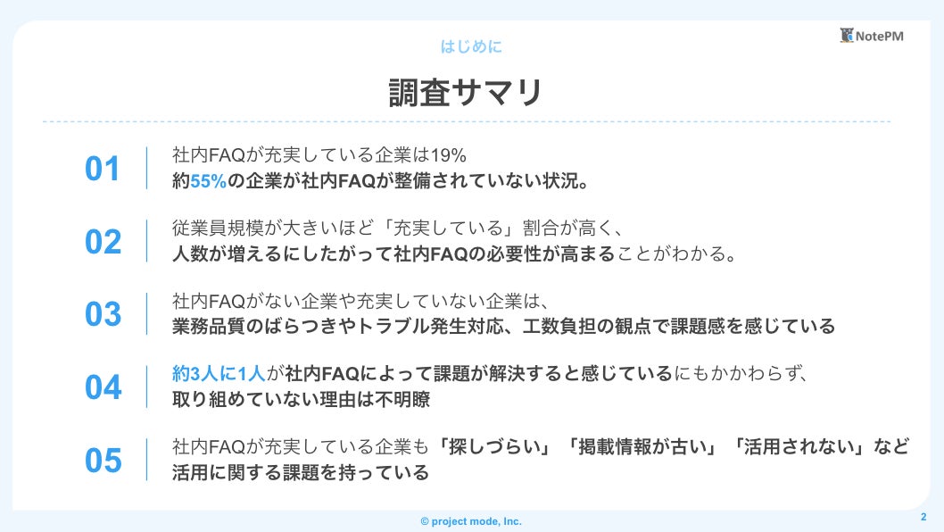 【社内FAQ活用の実態調査】ナレッジ管理SaaS「NotePM」を提供するプロジェクト・モードが調査レポートを公開