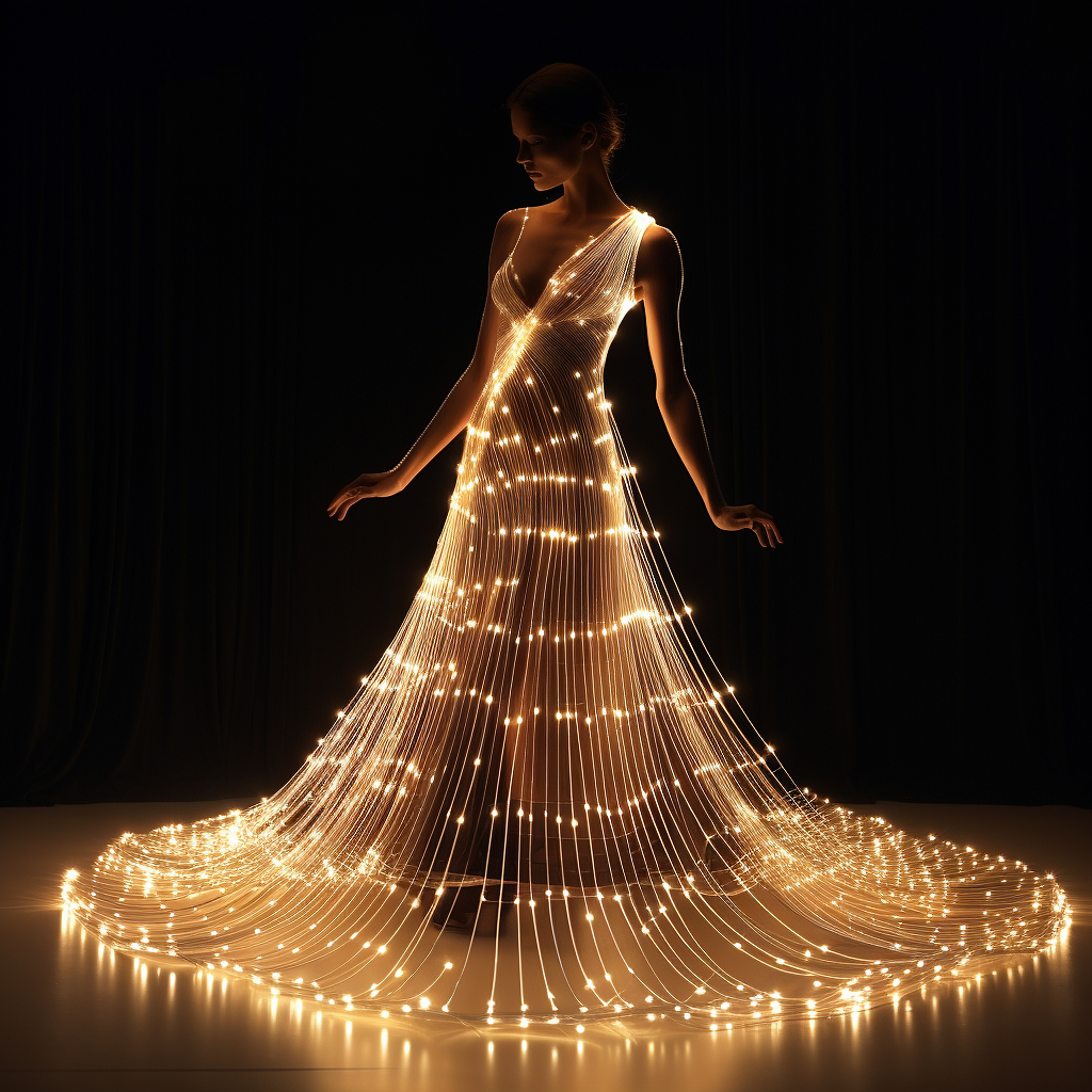 ・ワンピースの肩の形状と透け感、そして透けたドレスの中の電子柄が動くとまた新しい表現のアイテムができそう