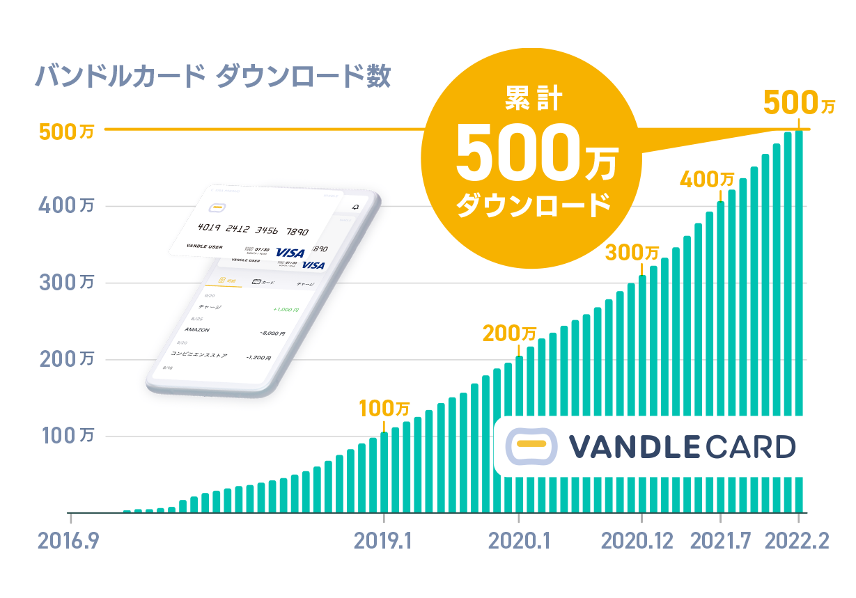 カンム、Visaプリペイドカード「バンドルカード」500万ダウンロード突破