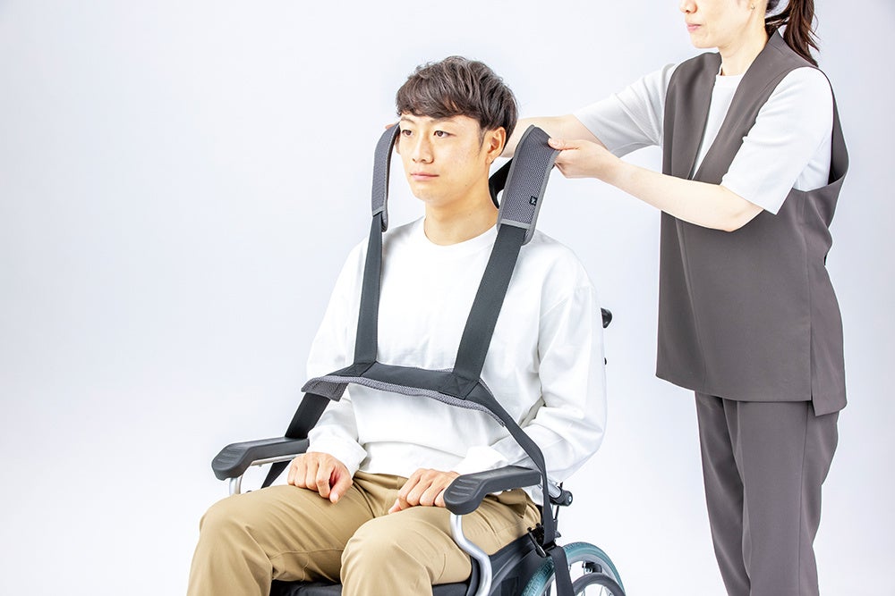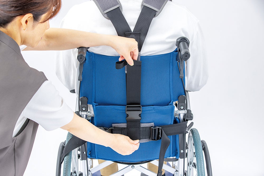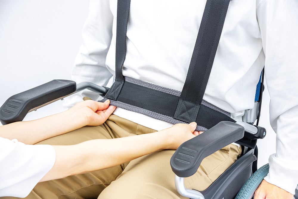 「座位姿勢保持ベルト」は車いす利用時に装着することで、正しい座位姿勢を保ち利用者・介助者双方が安心して日常動作ができることを目的に開発しました。