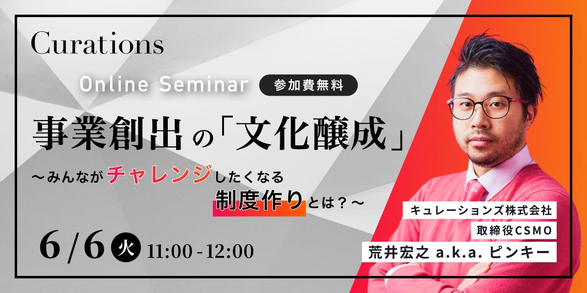 【6月6日(火)11:00~ 無料オンラインセミナー】事業創出の「文化醸成」〜みんながチャレンジしたくなる制度作りとは?〜