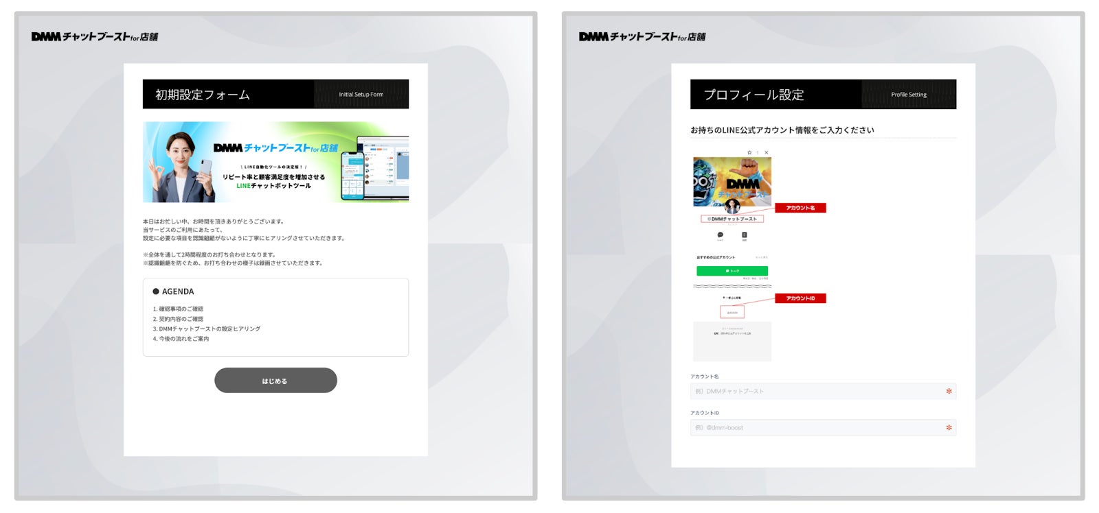 DMM Boostでは、店舗運営者やECサイト運営者向けに、LINE公式アカウントの運営支援や自動化を実現するDMMチャットブーストを提供しています。従来は、サービス契約企業向けの導入支援(オンボーディング)でLINE公式アカウントの初期設定をスムーズにおこなえるよう、スプレッドシートで作成されたヒアリングシートを運用していました。