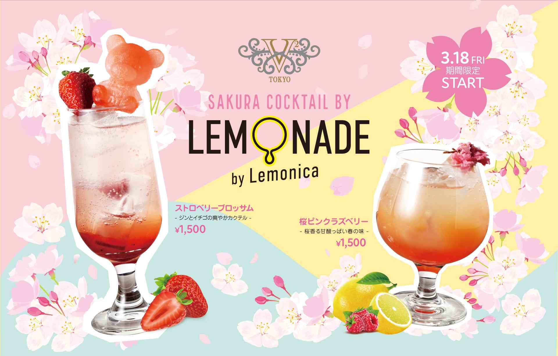 《国内最大級のナイトクラブ『V2 TOKYO』×レモネード専門店『Lemonica』》コラボ企画第3弾3月18日よりスタート!桜オリジナルカクテル2種を期間限定販売!