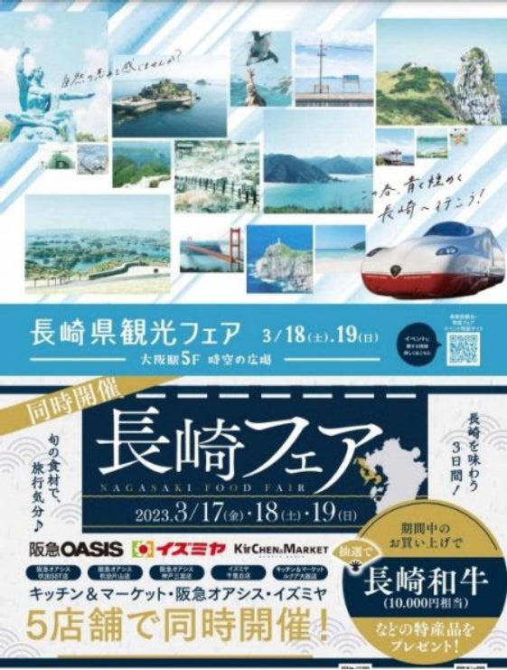 長崎県(本庁:長崎県長崎市、知事:大石賢吾)は、本県への誘客及び県産品の購入の促進を図るため、関西圏のみなさまに向けた「長崎県物産フェア」「長崎県観光フェア」を大阪府等で3月17日(金)より開催いたします。