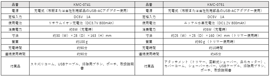 USB充電グルーミングキット KMC-0751/H