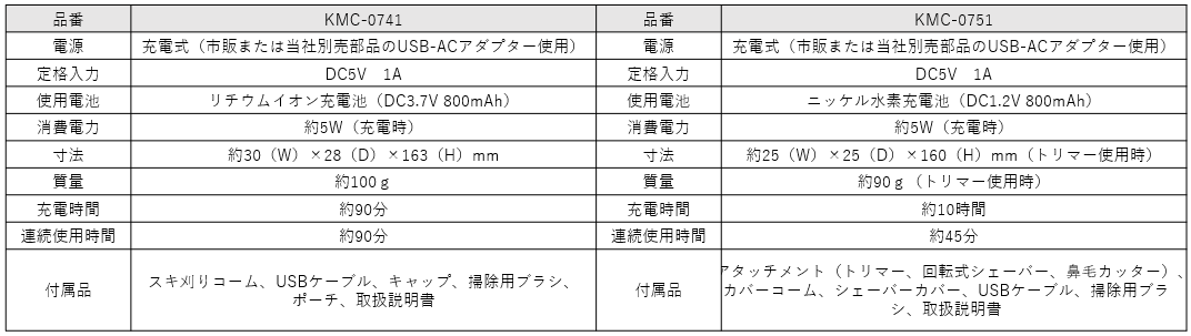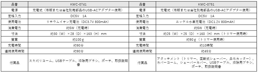 USB充電シェーバー KMC-0721/H