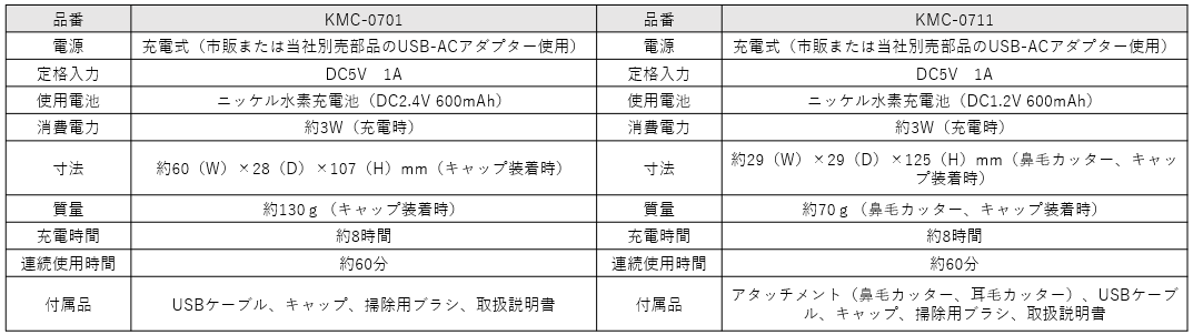 USB充電ノーズ&イヤートリマー KMC-0711/H