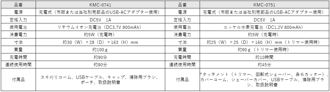 USB充電シェーバー KMC-0701/H