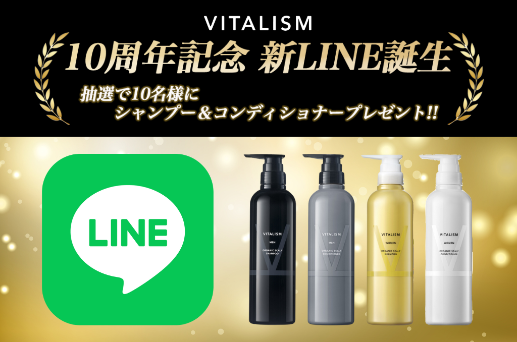 ブランド誕生10周年を迎えたVITALISMが、新公式LINEをリリース!登録者の中から抽選で10名様にシャンプー&コンディショナーが当たるプレゼントキャンペーンを開催!