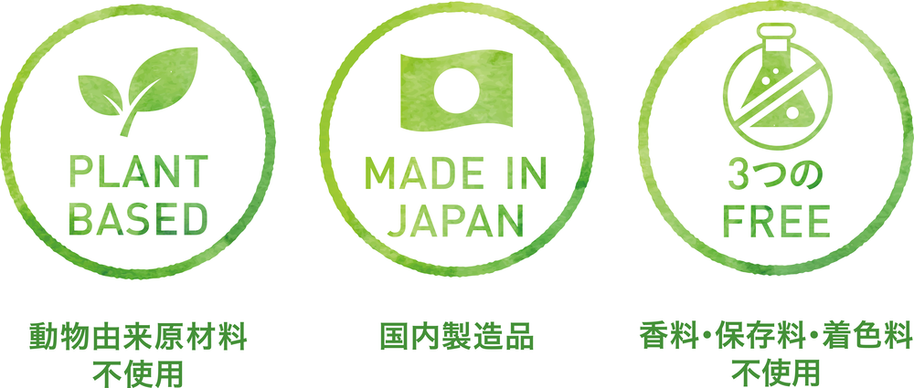また、「香料」、「保存料」、「着色料」を使用せず、国内製造にもこだわっています。