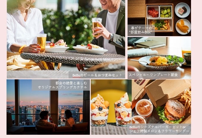 ルームサービスでご提供するお酒にぴったりのおつまみがセットになった春の味覚を堪能できる“部屋飲みBox”をご用意。プラン内無料でお召し上がりいただける客室ミニバーのビールやハイボールと合わせて、うららかな春の景色を満喫しながら、プライベートな時間をごゆっくりお楽しみください。