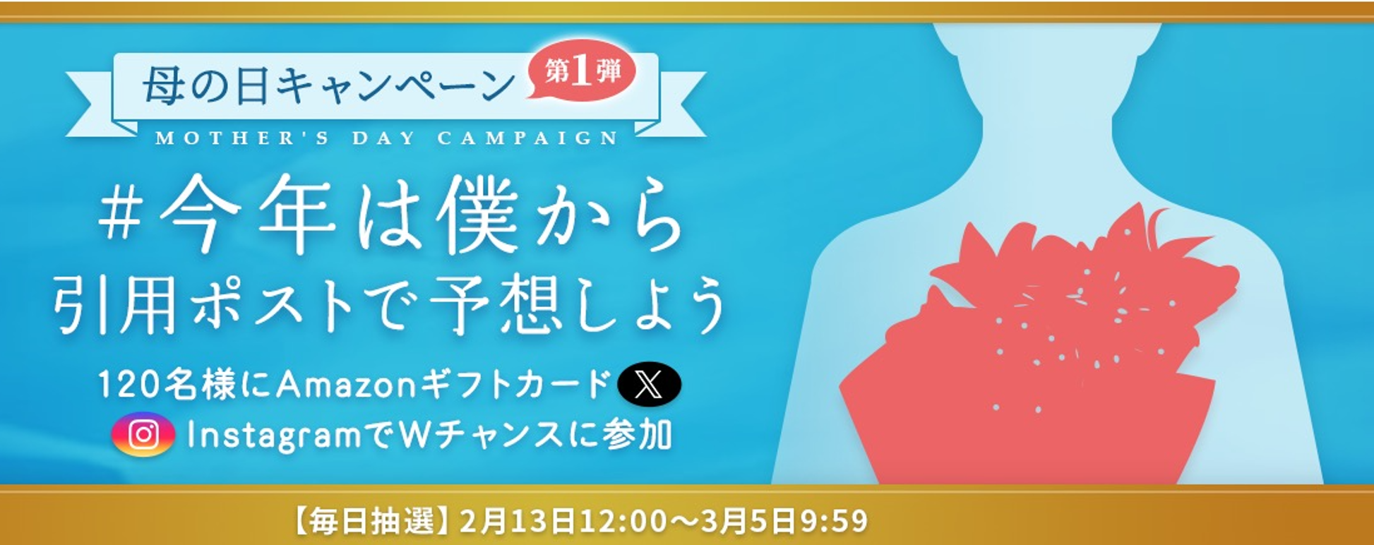 当てたで賞:10名様にAmazonギフトカード10,000円分をプレゼント! & 母の日特別キャンペーンの当選確率が5倍に!