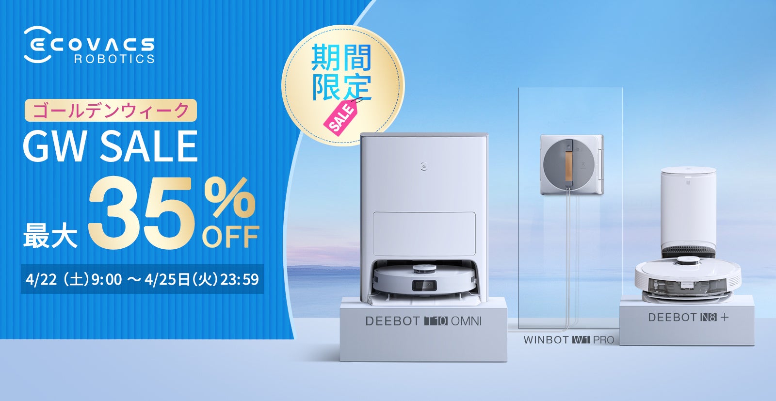今回Amazonの「ゴールデンウィーク・セール」に向け、エコバックスジャパン公式Amazonストアの売れ筋人気製品を最大35%OFFで販売いたします。高性能なモデルからコスパ抜群なモデルまでアマゾンで人気の商品をラインナップ。さらにセール価格と併用可能な特別クーポンもご用意しました。GW大掃除も毎日の掃除も快適になりたい方、お得なチャンスを是非お見逃しなく。