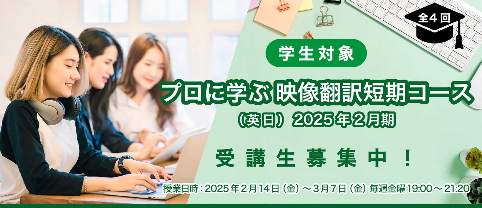 ■学生対象 プロに学ぶ映像翻訳短期コース(英日)2025年2月期概要