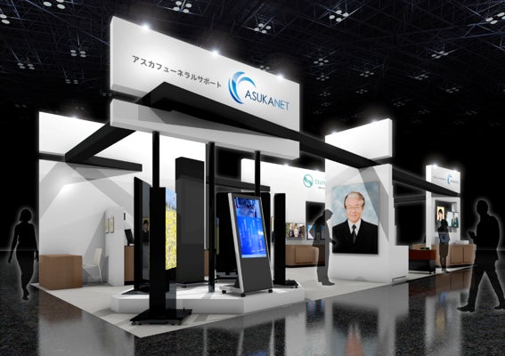 そのほか実際に大きさ、明るさを体感できる大型モニターや、今までにないサービス・新商品として、故人様との思い出を1つの用紙でまとめられる「ロングコラージュ」、従来のサイズよりさらにコンパクトとなって写真や動画を空中に表示させる「OmokageMINI」と会葬者に販売可能な焼香台「飛鳥焼香スタンド」も初披露いたします。
