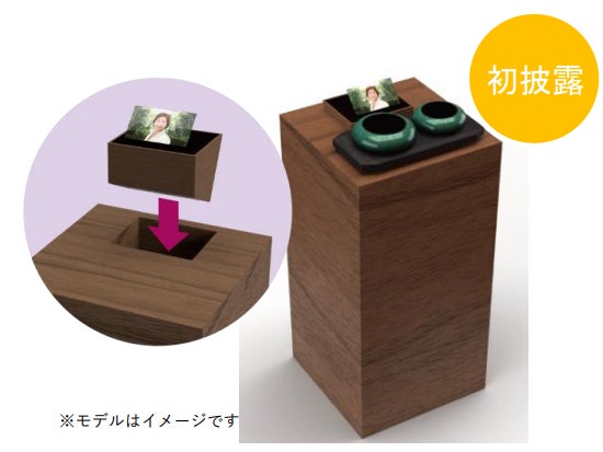 「OmokageMINI」がスロットインする新タイプの焼香台「飛鳥焼香スタンド」も初披露いたします。家族葬に最適なスタンド型ですが、全2種類(ロング・ショートバージョン)展開で葬儀の大きさに応じて数台を増設することで一般葬や社葬でもご使用いただけます。「飛鳥焼香スタンド(ショートバージョン)」は既存の焼香台にそのまま置いてご使用いただけます。