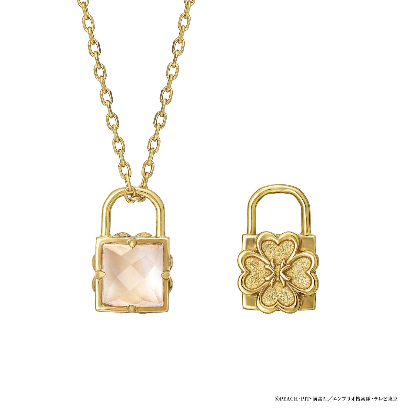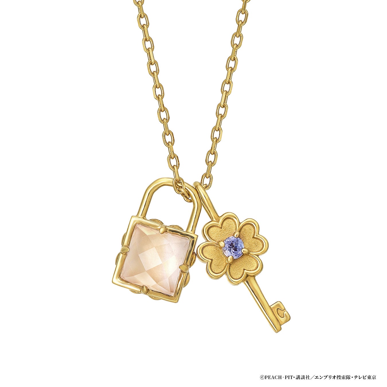 主人公・日奈森あむが身に着けているハンプティ・ロックと月詠イクトが持っているダンプティ・キーをモチーフに、2つのチャームがついたネックレス。憧れの詰まったモチーフを繊細な作りで再現し、きらめく天然石をセッティングすることで、大人の女性が日常でも使いやすい上質なアイテムに仕上げました。2つのチャームは取り外し可能なのでコーディネートに合わせて、組み合わせを楽しむこともできます。